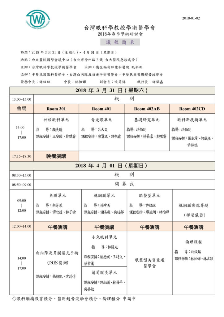 2018 Spring Symposium of the Taiwan Academy of Ophthalmology